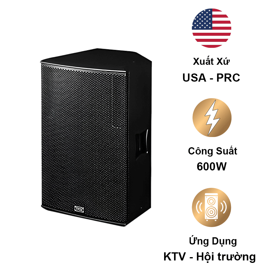 ModelXP-15Đáp ứng tần số55Hz-18KHz ±3dB (-10dB@45Hz)Cấu hìnhLF: Cuộn dây âm thanh 15” 380mm/4” (100MM), hành trình dài, bộ điều khiển tần số thấp từ tính neodymiumHF: Cổ họng 1,4” (35mm)/Cuộn dây âm thanh 3” (75mm), vòm hợp kim titan, bộ điều khiển nén tần số cao từ tính neodymiumCông suất định mức600W (AES), 2400W (đỉnh)Độ nhạy99dBMức áp suất âm thanh tối đa126dBTrở kháng8ΩGóc phủ sóng (-6dB)80° theo chiều ngang, 50° theo chiều dọcĐiểm giao nhau1,75KHzKích thước (Rộng x Cao x Sâu)429x690x414mmTrọng lượng32KG